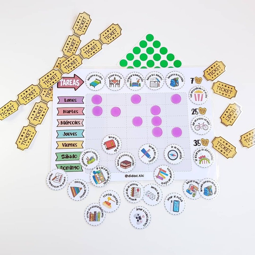 - Fichas tareas (8) y recompensas (12)