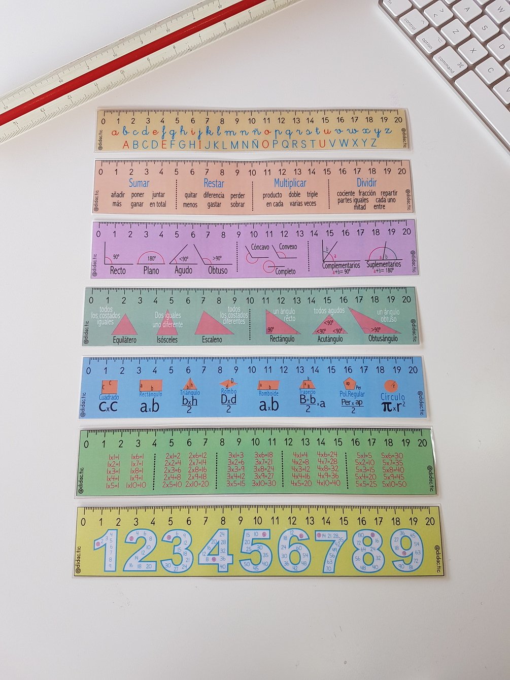 Reglas de 20 cm para medir, usar como apoyo visual y hasta como punto de libro.